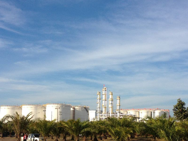 烏汶生物乙醇公司斥資33億泰銖建設泰國最大的酒精廠,年產乙醇1.32億升。烏汶生物乙醇公司在泰國東北五府全力推廣種植木薯500萬畝,目標直指“將泰國打造成東南亞酒精中心”。工廠產能為40萬升/天或一億三千二百萬升/年,消耗生產原料新鮮木薯與干木薯85萬噸/年。能生產工業用純度95%酒精與汽車燃料用純度99.8%酒精。我司在該項目中承擔主要非標設備---塔器、列管式換熱器的工廠制造并通過了CE認證,發酵罐、酒精罐等罐器現場制造、安裝及工藝管道的安裝。通過后期技術升級,該裝置已經具備同時進行全糖蜜生產無水酒精的能力。