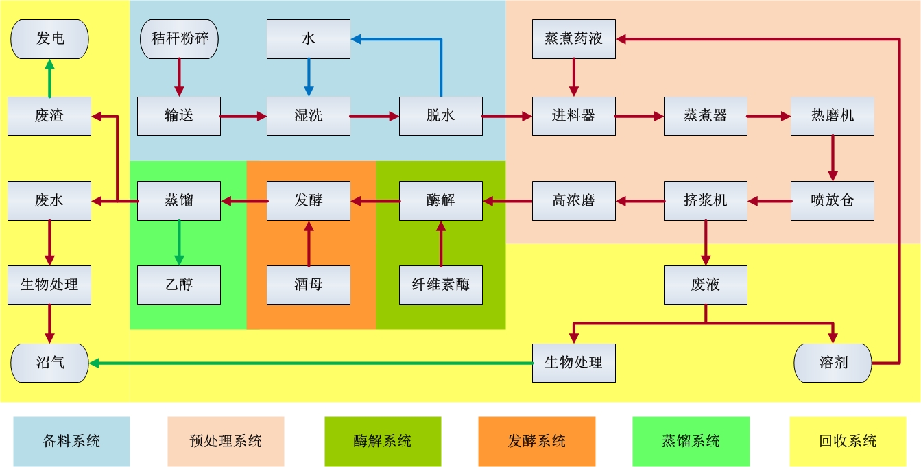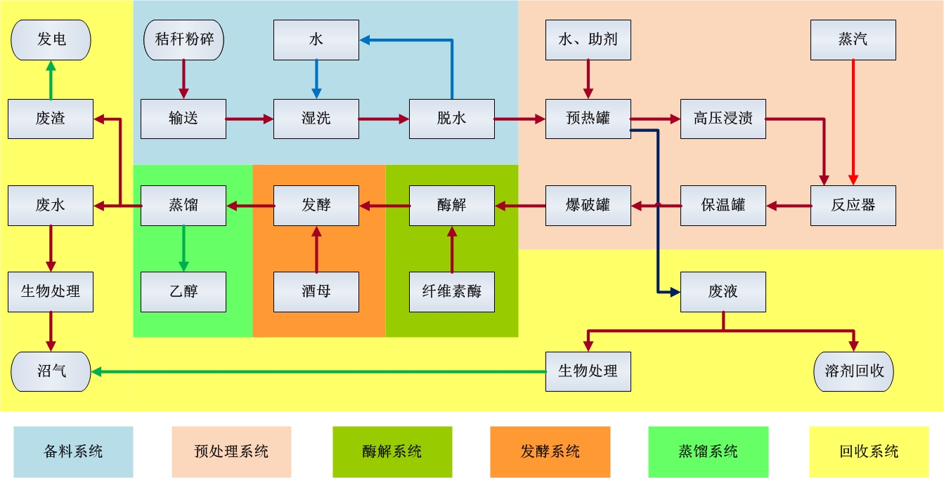 以木質纖維素為原料,采用酸法蒸煮高濃磨工藝或蒸汽爆破工藝生產乙醇,成品乙醇質量符合《中華人民共和國食用酒精(edible alcohol)國家標準(GB 10343-2008)》或《化學試劑乙醇(無水乙醇)國家標準(GB/T 678-2002)》。